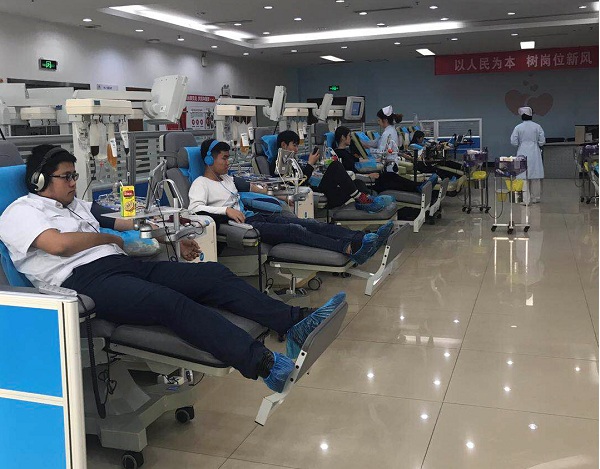 无偿献血基本分为捐献全血和机采成分血这两种。随着大家对机采成分血的了解,越来越多的大学生加入到捐献机采成分血的队伍中来。在十一月里,几乎每天都有大学生自发组织的团队来到机采成分科捐献他们的青春热血,让人在秋末冬初的季节里感受到如夏日般暖人心田。河北工业大学的同学们经常利用自己的空闲时间来到血液中心捐献机采血小板,奉献属于他们的爱心。