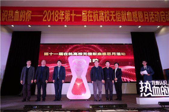 最后,所有领导启动“热血先锋”爱心沙漏,2018年第十一届在杭高校感恩月无偿献血活动正式启动。