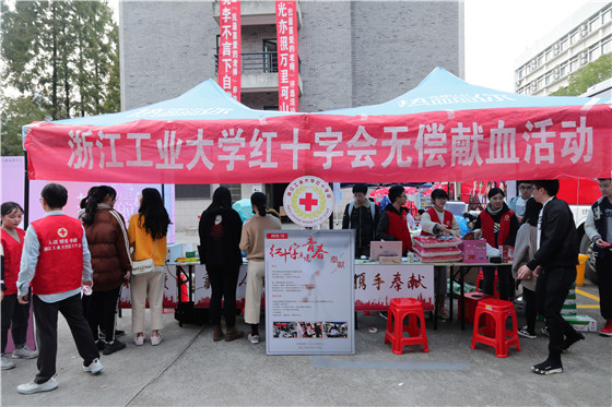 今天,流动献血车也同时开进浙工大朝晖校区,前来献血的同学们排起了长队。2017年,杭城共有39所高校25619人次献血759万余毫升,为保障临床用血起到了重要作用。浙江省普通公民平均千人献血率为12‰,而全省大学生的千人献血率为46.4‰,是普通公民的4倍,为树立社会新风尚作出了表率。