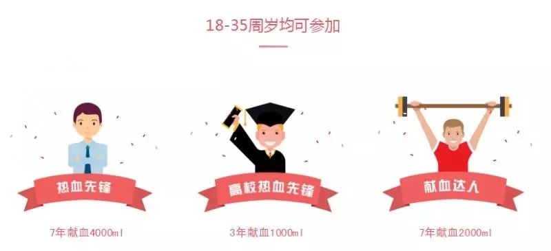该项计划分为7年献血4000ml的“热血先锋”、3年献血1000ml的“高校热血先锋”和7年献血2000ml的“献血达人”组成,完成计划的,由省无偿献血志愿者协会授予荣誉称号,发给证书、纪念徽章并优先申报相关荣誉奖项;献血量还可转化为志愿服务信用时数,捐献200毫升等同于参与志愿服务信用时数4小时,每增加100毫升等同于增加志愿服务信用时数1小时,信用时数与青年守信联合激励措施直接挂钩,如可以增加落户积分或子女入学积分等。全省广大青年、志愿者可以直接在“志愿汇”APP中的无偿献血专区报名参加该项活动。