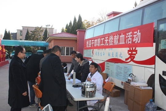 为组织好冬季无偿献血公益活动,乾县县委县政府两办向全县机关单位和各乡镇发出组织全县干部职工开展无偿献血活动的通知,合理安排各单位献血时间和地点,要求各单位负责人带队,参加献血活动人数不低于单位人数的20%,并将各单位献血情况评比打分,上报县考核办,计入平时考核分值。