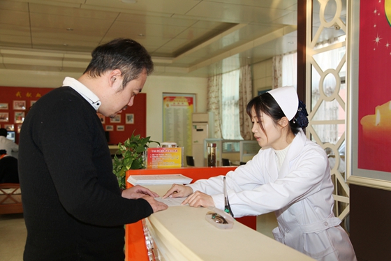 监考人员为新进员工健康查体环节考核打分(于瑞杰 摄影)