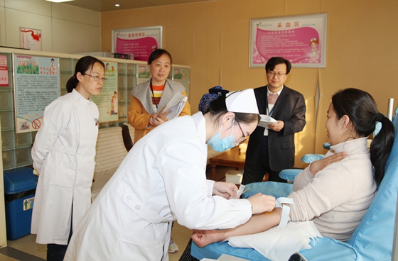 新进人员参加采血实际操作技术考核(于瑞杰 摄影)