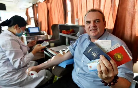 11月27日中午,我们来到了南昌理工学院迎来了一位外国友人——来自澳大利亚的Leigh Stewart先生。他是南昌理工学院邱校长的朋友,也是该校客座教授! Stewart先生4年前来到中国,从事与健康疗养服务相关的行业。在故乡时,Stewart先生就是一位固定献血者;如今,他的献血足迹遍布北京、上海、深圳、郑州,今天又来到江西南昌。据Stewart先生介绍,迄今为止,他已参加过176次无偿献血,其中捐献血小板150次,血浆20次,而这也是他第6次捐献全血。