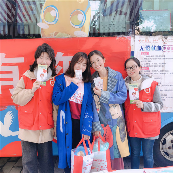 11月23日,天朗气清,凉风习习,感恩节的余温还未散去。一大早,两位来自高校的学生志愿者张九于和曾奇艳就来到了江苏省血液中心鼓楼广场献血车做志愿服务。和张九于一同来的还有她的两位同学,来自南京林业大学的朱荣珍和夏玉琦,她俩则是结伴前来献血的。