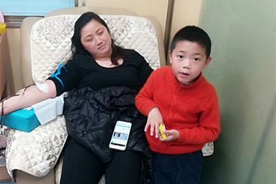 小男孩紧紧依偎在妈妈身旁,当粗粗的采血针刺进妈妈血管时,瞬间,他紧张抬起了头,心疼地看着妈妈的脸。咦,妈妈竟然一脸轻松,平静地看着他,难道真的不疼吗?小男孩的紧张情绪慢慢消失了,“妈妈,不疼吗?”“有一点,但是可以忍受。”他的小手紧紧抓住妈妈的另一只手,眼睛紧紧盯着汩汩流淌的血液。当护士阿姨拔出针头的时候,小家伙重重的呼出了一口气。“妈妈,我可以献血吗?”他的话音未落,一屋子的人都乐开了,大家笑着感叹“榜样的作用绝对是无穷的!”而妈妈则认真的对他说:“你现在还不能,等你长到你哥哥这么大就可以了,哥哥已经献了四次血。你长大了,妈妈就老了,不能献血了。但妈妈希望你们弟兄俩能将咱家献血的传统继承下去,让这份爱心一直传递,永不停息,就当做是咱家一份最有价值的财富。”小男孩似乎也明白了,认真地点了点头。