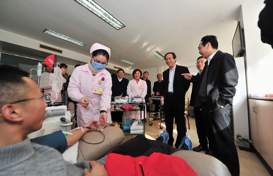 11月29日下午,中国红十字总会副会长王汝鹏在省红十字会副会长张青、市卫计委副主任查忠海和市红十字会负责人梁为纲的陪同下,深入市中心血站实地调研“红十字志愿服务基地”建设情况,市中心血站站长明钰率相关科室负责人接待了调研组一行。
