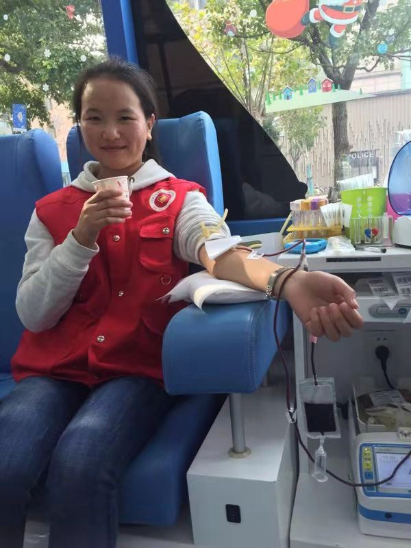 刘兰是一位来自于南京审计大学的可爱姑娘, 11月14日她来到江苏省血液中心大行宫献血车做志愿服务,刘同学说今天是她第二次做志愿者,第一次做志愿时就想献血,当时不符合献血的条件,今天来之前已做好了献血前的相关准备,要完成自己人生第一次献血的心愿。经过征询体检化验合格后,成功献血400毫升。她身体力行鼓励那些想献血而又担心害怕的人们,下午有四位南广的大学生因她的招募,走上了我们的献血车共计成功献血1200毫升。有时爱心只需要一点点勇气,感谢刘兰爱心的付出,希望这种爱能感染我们身边的每一个人,积小爱成大爱,让世界处处都充满爱。
