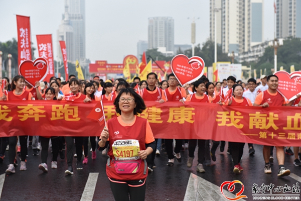 南宁中心血站:我奔跑 我健康 我献血 我快乐——献血志愿者南马赛场弘扬无偿献血正能量