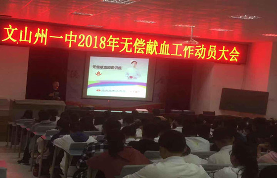 此次无偿献血知识专题讲座,文山州第一中学领导高度重视,动员学生干部前来参加培训学习,学生干部再到班级进行宣传,为学校即将开展的无偿献血活动奠定了良好基础。