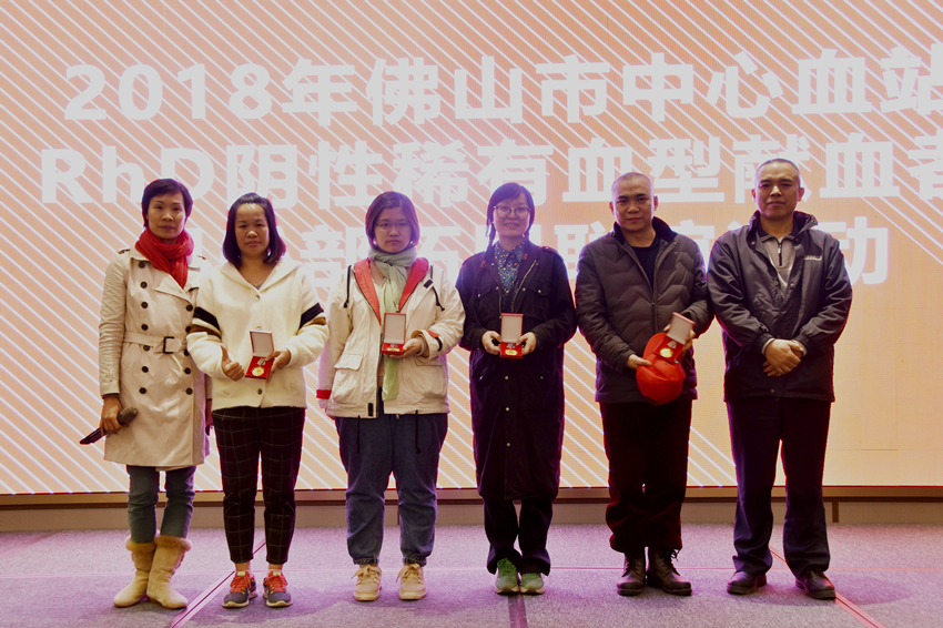 佛山血站这支稀有血型献血者团队目前约有1100人左右,能联系上的大约只有400多人,在总献血人群里虽然占比非常小,但每位成员之间都堪比亲兄弟姐妹一般。他们不但平日积极献血,分享生命;当群内小伙伴有困难时更守望相助,义不容辞;当接到血站紧急呼唤时,他们同样及时伸出援手,救急需用血的患病同胞于危难之中。就2017年,稀有血型团队共有145人次参与献血,献血量达49600毫升,100%满足RhD阴性血液临床用血的需求。从血站建站至去年年底止,RhD阴性献血者的累计献血量已超过70万毫升。去年共启动应急献血招募4次,响应率为81.82%。为肯定稀有血型献血者急人所急的爱心义举,鼓励他们继续发扬守望相助,互爱互助的“熊猫”精神,佛山市中心血站对2017年度自觉积极献血的12位献血者颁发了“献血积极分子”荣誉勋章,以及对及时响应血站号召应急献血的9位献血者颁发了“献血应急先锋”荣誉勋章,并对获得2015-2016年度广东省无偿献血表彰奉献奖的获奖者颁发了荣誉证书。