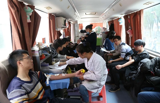 来自校青协志愿者同学们与血站工作人员一起,忙前忙后地接待每一位前来献血的同学,献血车上的同学们爱心接力,献血车下志愿者们的身影也是很美的点缀……