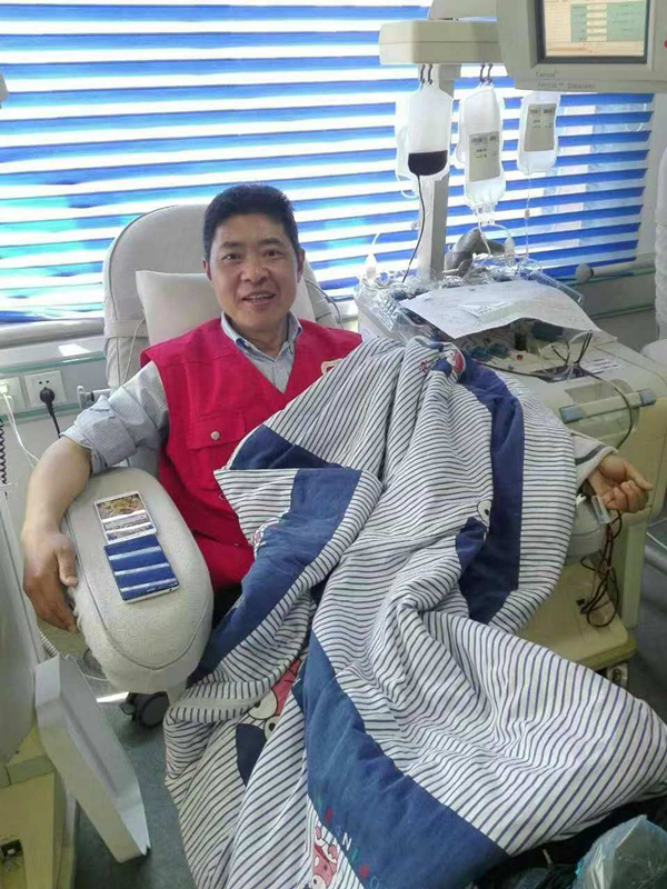说起第一次参加无偿献血,张海洋表示纯粹是因为生活中一个突如其来的反思。朝九晚五的会计工作,家住省人民附近的张海洋每天上班都要经过多家医院,路上会碰到很多行色匆匆的人排队看病。“有一天,我再次经过医院,看着身边擦肩而过的病人,突然想问自己,活了30多年,我有没有给社会留下什么贡献?”说来也巧,当天晚上,妻子拿着一本献血证,向他诉说逛街时偶然走上献血车的经历。这一情景,触动了张海洋的想要献血的神经。第二天,他毅然走上了新街口的献血车,成功捐献热血后,油然而生的成就感充斥了他的内心。从此之后,每半年一次的献血,他从来不会缺席。不仅如此,张海洋还加入了江苏省志愿者无偿献血宣传服务队,无论严寒酷暑,都利用自己的休息时间到献血车上进行志愿服务。在他的带动下,妻子和孩子都成为了固定献血者,身边的好友也逐渐加深了对无偿献血的认识,加入了无偿献血的行列中。