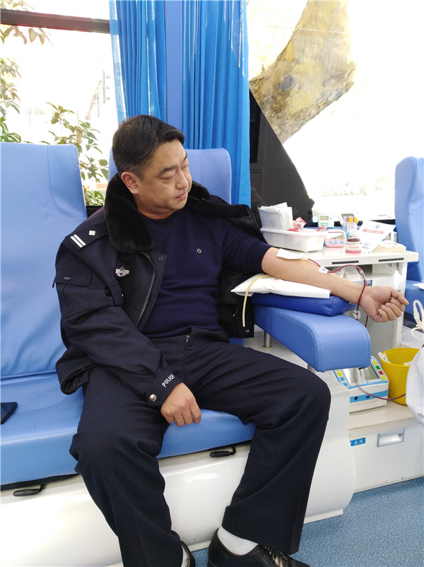 12月13日,他了解到管辖区的陈富亚老人因食管胃底静脉曲张破裂大出血在明基医院抢救,立即主动联系家属,看是否可以献上自己一点微薄之力。家属说老人已经输血3000ml,还要继续用血,可是现在血库血液比较紧张,他看着病床上还没渡过危险期的老人,当即决定献血。事不容迟,他,立马来到江苏省血液中心位于大洋百货的献血车献了400ml。