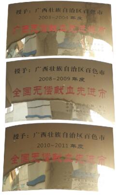 图为百色市中心血站连续三年荣获全国无偿献血先进市