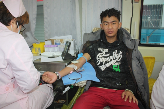 “无偿献血,挽救生命。奉献爱心,分享生命,这是一种助人为乐的传统美德,也是一种仁义道德文化。我要用爱心行动传播弘扬献血文化,架起民族团结的爱心桥梁。”正在献血的西藏民族大学大三学生顿珠加布说。