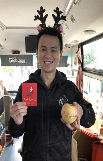 来自校红十字会志愿者部副部长苏越带头献血,并在苹果上写下自己的新年愿望。在许多红会志愿者们的带领下,同学们献血的热情持续高涨。更有许多同学在苹果上写下他们的新年愿望后就大口吃掉,他说,这样就就可以愿望成真啦。活动现场被可爱的同学们渲染的特别热闹……还有同学们在献完血后,在朋友圈晒出了自己的“献血证”,并呼吁大家在平安夜献上一份爱心,许更多人能平安团圆!