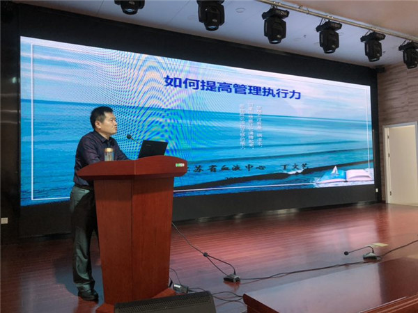 本次研讨会邀请了江苏省血液中心党委书记丁文艺进行授课,丁书记围绕《如何提高管理执行力》进行了精彩的讲述。他指出,执行是战略实施中不可或缺的关键环节,必须成为组织文化的核心元素,并以《把信送给加西亚》一书为例,以领导者的七项基本行为、建立文化变革的框架、高效执行者的七个习惯等执行的三大基石为线索,深入浅出地讲授了提高组织中管理执行力的重大意义和经验做法。丁文艺书记讲课语言精辟,条理清晰,道理深刻,令大家受益匪浅。本次会议还邀请了唐山启奥科技股份有限公司王国栋总经理就《2018年后勤保障系统建设汇报》进行了讲解,旨在促进全省后勤装备信息化建设,弥补目前我省采供血工作中目前存在的短板和不足,推动后勤装备管理工作向前发展。