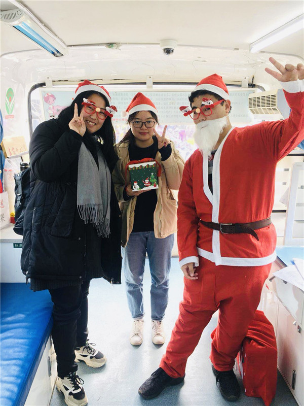 在这井然有序的工作节奏中,圣诞老人带着他的小伙伴们突然出现在了献血车上,他们不仅送来了祝福,增添了节日气氛,还给车上的工作人员带来了圣诞礼物——“一只有温度的马克杯”。他们就是那一批充满热诚的学生志愿者团队,在平时的志愿服务中,他们热情主动,积极的向广大市民宣传无偿献血,在与我们工作人员的配合中,他们热心关怀,暖心服务,在今年的5.12护士节节日当天,也准备了惊喜,感动了无数白衣天使!