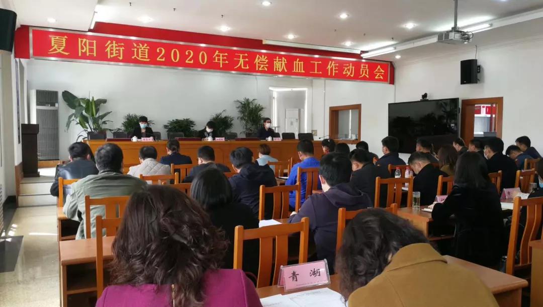 为保障非常时期临床用血,维护采供血平衡,夏阳街道办事处接过团体无偿献血接力棒,于4月8日召开2020年无偿献血工作动员会,街道党工委副书记、办事处主任潘慧敏,办事处副主任陈冰出席动员,街道31家村居及68家企事业单位负责人参加会议。