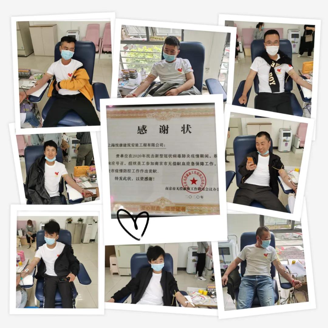 为响应全国抗“疫”献血的号召,上海悦康建筑安装工程有限公司总经理康妹女士带领公司机关及南京项目部23名爱心员工联动献血,为抗”疫“助力,为社会奉献,展现积极、有爱、向上的企业文化。