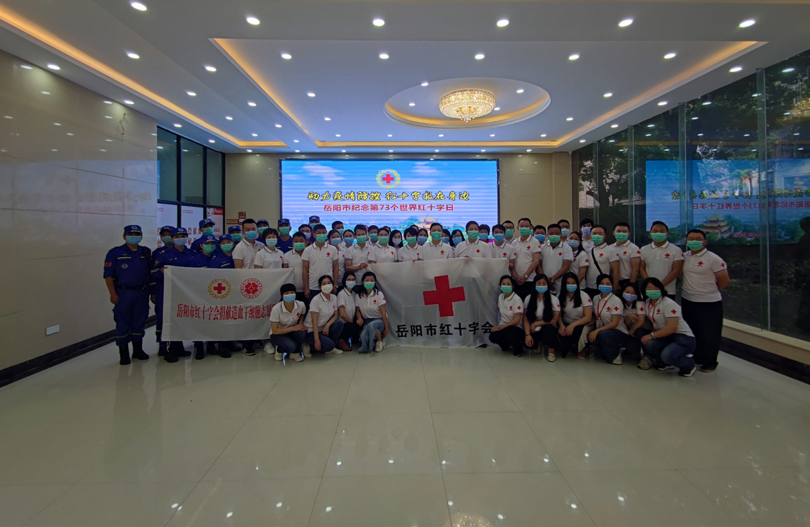 为纪念“5·8”世界红十字日,宣传弘扬红十字精神,5月8日上午,岳阳市红十字会在岳阳市红十字会中心血站举行“助力疫情防控 红十字‘救’在身边”纪念世界红十字日主题活动。岳阳市红十字会工作者和志愿者代表参加活动。