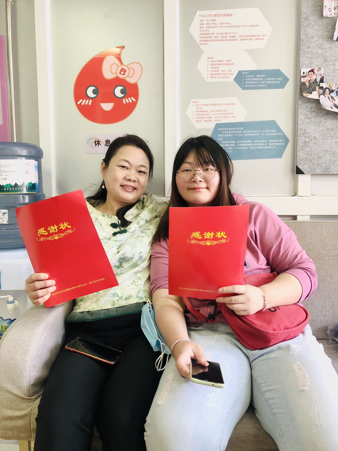 熊斯柔今天带着妈妈一起来献爱心,第一次献血她觉得,今天是母亲节献血会觉得很有意义,妈妈也非常支持和鼓励她献血。