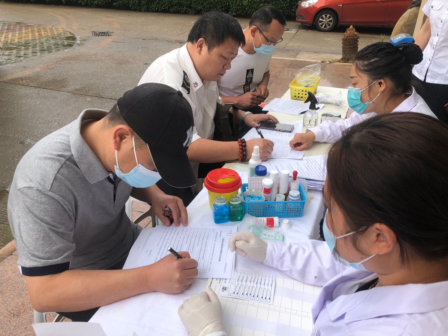 5月9日,南昌市急救中心开展无偿献血活动。献血车一到,大家就早早的排好队,他们当中大部分是无偿献血的常客了。