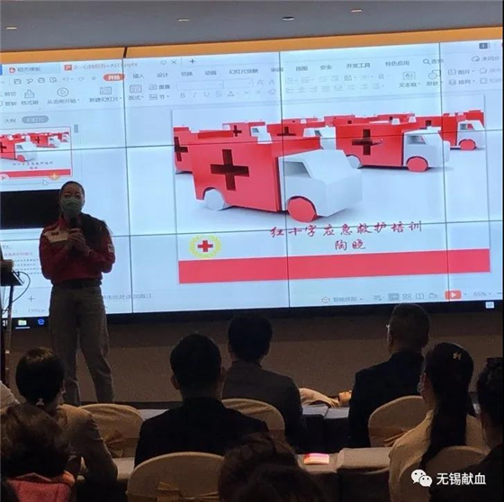 讲座由酒店业务经理仇苏苏主持,并邀请了无锡中心血站血液制备供应科梁怡星老师和红会救援队陶晓老师给大家分享无偿献血知识和心肺复苏等急救培训内容。