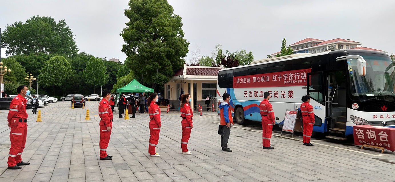 在广泰大厦楼前,驻马店市红十字山地救援志愿服务队整齐队列在献血车旁,发扬无私奉献精神排队进行捐血。同时,天方药业集团志愿者得到活动通知后,也陆续来到献血点奉献爱心。
