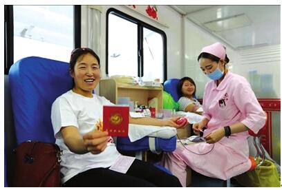 百次献血女性楷模——郭彩玲:“献血的时候带着女儿一起来,就是想从小给她树立‘助人为乐’的意识。”