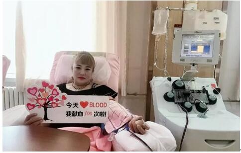 (郭彩玲捐献血小板,迎来自己的第100次献血)
