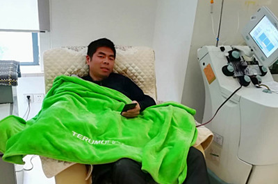 赵永泉,是我站的资深献血者,累计已经献血23次,全血7700ML ,血小板40个单位 。这次他本是要献全血的,因为献全血快,他献过血还要去办事。在得知友好医院的一位重症患者急等着AB型血小板救命时,他毫不犹豫地说:“今天也算是我与那个患者有缘,再急的事也没有救命重要啊!假如血小板检测达标就献血小板吧。”那名患者真的太幸运了,赵永泉的血小板计数刚好达到献20个单位的量。