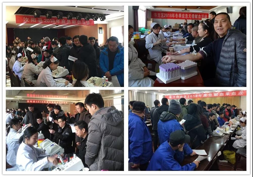 二是做好应急献血工作,让应急献血切实成为我市临床用血的兜底保障。2018年年初至年底,洛阳市所辖8县1市7区分别开展了应急献血活动,共有6503位爱心人士捐献热血260万毫升,其中汝阳县、洛龙区、宜阳县、瀍河区广泛宣传、深入发动,应急献血人数大幅度超过目标数。10-11月,开展了开学季高校应急献血活动,河南科技大学、洛阳理工学院、洛阳师范学院、洛阳职业技术学院共有4113位莘莘学子捐献热血163.34万毫升。6月份,洛阳市直机关党员志愿服务大队“关爱生命”分队开展无偿献血活动,市委副秘书长、市直工委书记朱晶莹来到现场慰问工作人员和献血者,并带头参加无偿献血,共有982位公务员捐献热血39.28万毫升,起到了模范带头作用。元月份,驻洛96608部队共有262位人民子弟兵应急热血10.48万毫升,为第二故乡做出贡献。