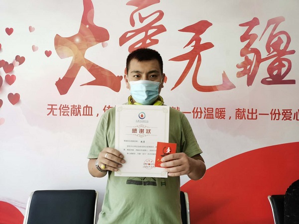 他介绍说,第一次献血是2009年,一次偶然的机会,他从南开区百脑汇门前路过,那里停着一辆采血车,当时他脑子里就萌生出一个想法,“我这么年轻力壮的,也去献点血吧,说不定还能救人一命呢!”第一次走上采血车让钱勇充满了新鲜感,当时的他对无偿献血还完全不了解,抱着试一试的态度献了200毫升全血,回到家后还被妈妈 好一顿埋怨,害怕对儿子的身体有损伤。如果不是2012年他到血液中心当保安,可能就永远与无偿献血擦肩而过了。