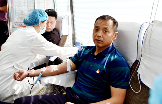 山东地矿五院党委副书记杨云涛带头参加无偿献血(马克 摄影)