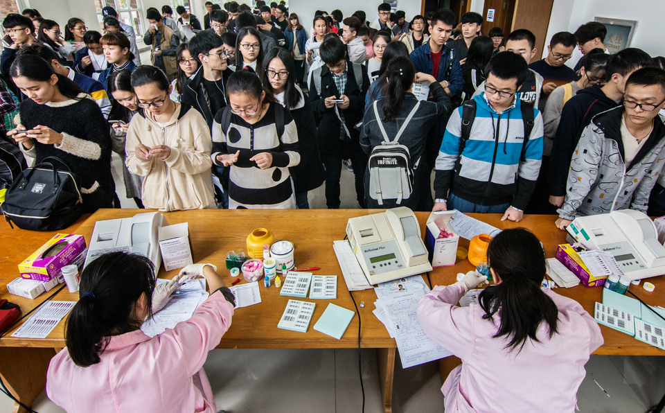 2016-2017年度,全市共计有156430人次参加献血,献血量48087.8升。2017年献血人次和献血量同比分别增长7.8%和7.8%,创历史新高。其中捐献机采血小板15297人次,捐献血量18608个治疗单位,同比分别增长8.2 %和18.7 %。成分输血率达到99.9%;自体输血共计23424例,累计回输血量9447升,全市自体输血率达17.2%,自体输血工作走在全省乃至全国前列。