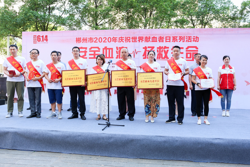 6月14日是第十七个“世界献血者日”,为弘扬献血者无私奉献的精神,推动郴州市无偿献血事业持续发展,营造无偿献血的良好氛围,6月12日上午,我市在龙腾广场,开展郴州市2020年庆祝“世界献血者日”系列活动,现场表彰慰问无偿献血优秀个人、优秀单位、优秀志愿者及困难献血者代表。