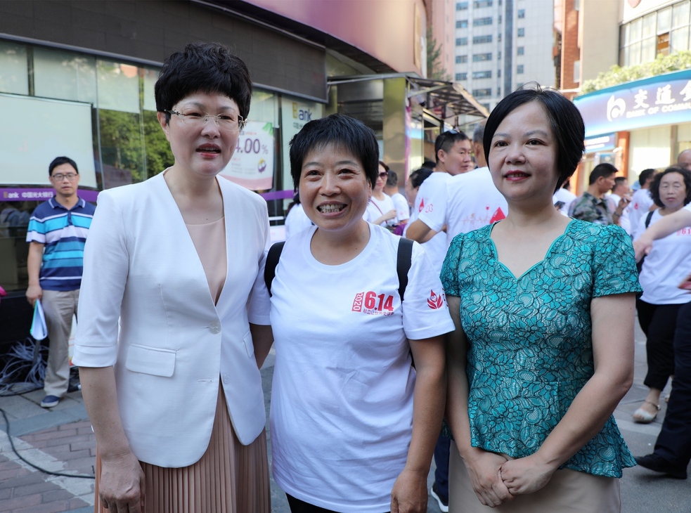 (市政府副市长贺建湘,市卫健委主任周汶与我市“女献血冠军”廖静平亲切合影)