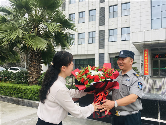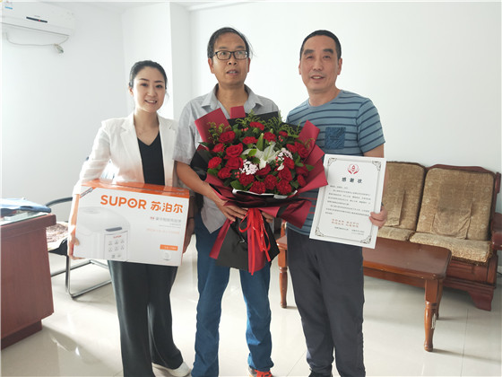 曾宪军接过鲜花、感谢状和慰问品的那一刻显得十分惊喜,脸上露出了灿烂的笑容。