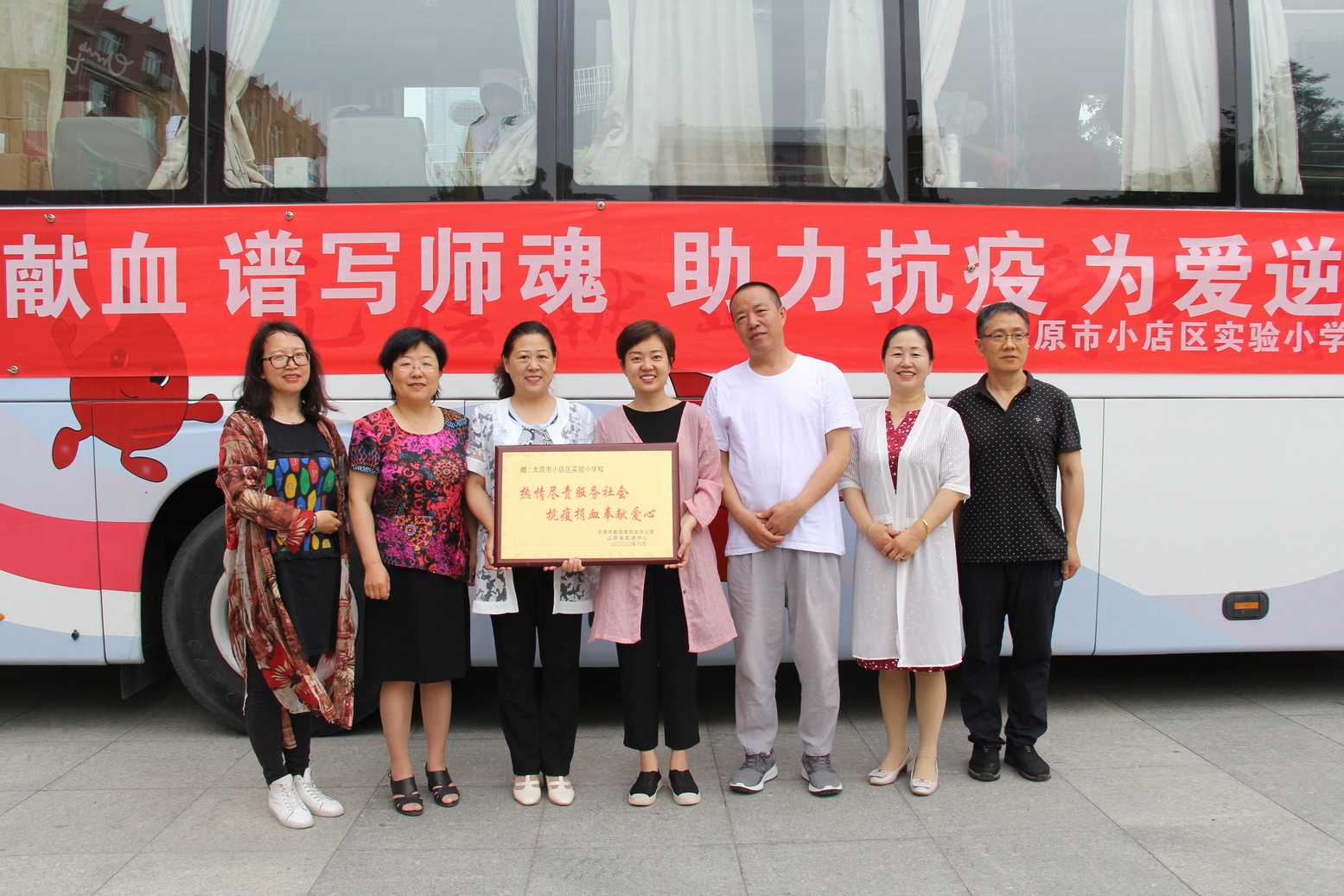 6月9日上午,太原市小店区实验小学校在“世界献血者日”来临之际,积极联系山西省血液中心组织全校党员、教职工开展无偿献血活动。在学校党支部、校委会、学校工会的积极倡导下,张继芬校长及各位领导率先垂范,全体党员、教师积极响应,踊跃捐献热血,奉献爱心。无偿献血,无尚光荣;为爱逆行,谱写师魂;大爱不言,下自成蹊!实验的校园每年都有很多教职工、多次自愿参加无偿献血活动。今天上午小店区实验小学校共有38名党员、教师、教职工成功献血15200毫升。与其坐而论道,不如身体力行。他们用自己的实际行动诠释着人民教师关爱生命、心系社会的师德仁心,同时也在正面引导学生了解无偿献血知识,从小树立关爱社会、服务他人、乐于奉献的道德观和价值观,为学生树立了学习的榜样,为培养学生的公民意识、奉献精神起到了积极的示范和推动作用,也为他们“扣好人生第一粒扣子”播下了一粒粒大爱无私的种子 。