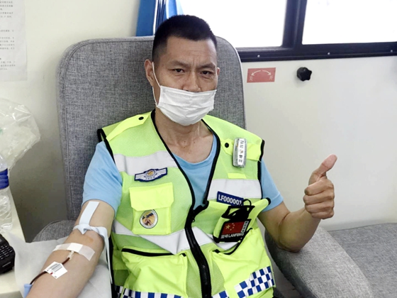 蓝峰应急救援志愿服务队队长盛强带头献血