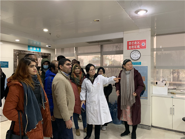 陈青副主任为留学生们介绍了我省采供血机构、无偿献血情况及我省“三免政策”(在本省获得国家无偿献血奉献奖、无偿捐献造血干细胞奖和无偿献血志愿服务终身荣誉奖的个人,可以凭相关证件免费游览政府投资主办的公园、旅游风景区等场所,到政府举办的医疗机构就诊免交普通门诊诊察费,免费乘坐城市公共交通工具)。同时根据临床用血情况探讨血液安全策略。随后,留学生们参观了供血室、机采科、成分制备科、检验科、输血研究室和质管科等科室。