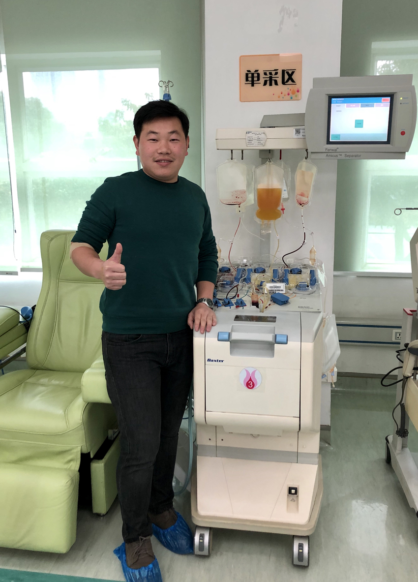 2019年1月7日,费森尤斯卡比血细胞分离机应用工程师冯工来我站机采科捐献成分血,体验使用输血输液加温仪捐献成分血的过程。