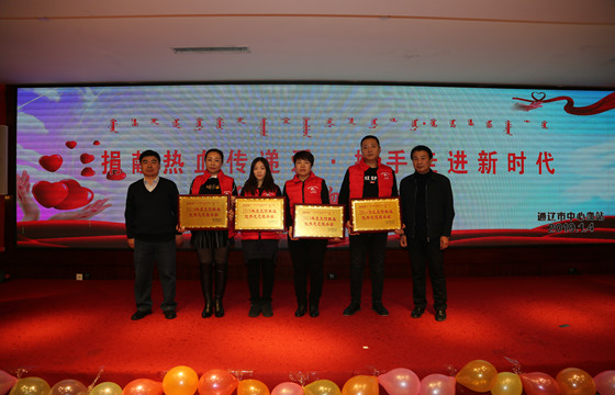 市卫生计生委副主任周宝德宣读了《关于表彰科左后旗志愿者联盟等4个无偿献血志愿者服务队的决定》,科左后旗志愿者联盟、内蒙古民族大学青年志愿者协会、通辽职业学院护理系无偿献血志愿者服务队、领航无偿献血志愿者服务队均获得了通辽市献血办公室、通辽市中心血站授予的“2018年度无偿献血优秀志愿服务奖”,赵玉儒副主任、周宝德副主任为4个志愿者服务队颁奖。