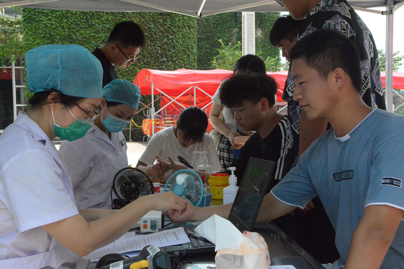 现场,前来参加无偿献血的同学不一会儿就排起了爱心长龙。同学们依次填写无偿献血登记表,排队参加体检、化验、献血,现场秩序井然。同学们纷纷表示:在建党99周年这个特殊的日子,能够用自己的无偿献血行动抗击疫情,帮助他人,感到非常开心,也非常自豪!