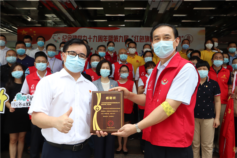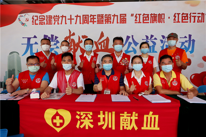 7月1日,为纪念中国共产党建党99周年,进一步巩固拓展“不忘初心,牢记使命”主题教育成果,增强基层党组织的战斗力和凝聚力,密切党群关系,中共深圳市国贸物业管理有限公司第二党支部、中共深圳市中国银行深圳市分行罗湖管辖支行委员会、中共深圳市罗湖区南湖街道嘉北社区党委举办“红色旗帜、红色行动”无偿献血党建共建活动。