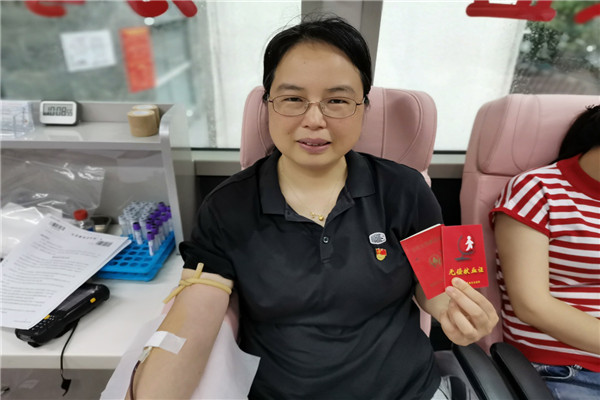 来自株洲市六零一中英文小学教师胡红健带着自己的“珍藏”——一本1996年的无偿献血证,来到了无偿献血活动现场,她说:“第一次献血是23岁,那一年我还是团支部书记,如今我是一名党支部书记,在党的号召下,我一直在公益的路上前行,这就是给孩子们最好的教学。”