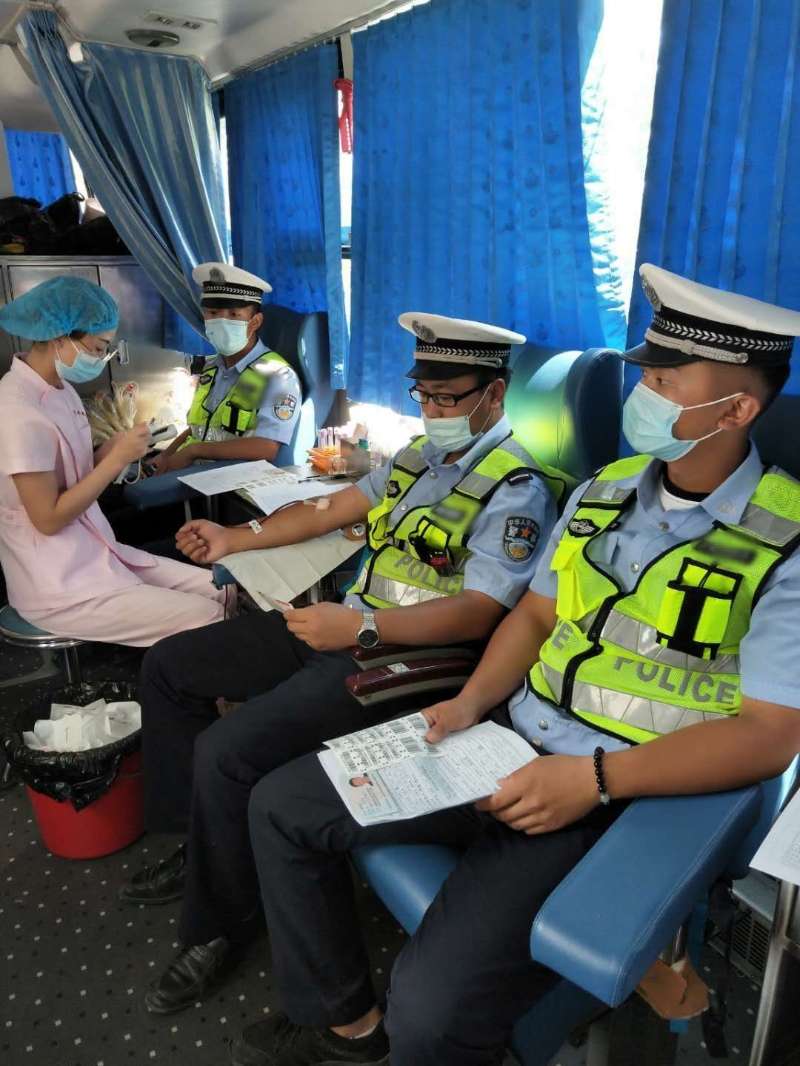 人民警察爱人民,在工作中他们是道路上的一盏红灯,为来往车辆、行人保驾护航,护佑生命;在生活中他们是生命线上的一盏绿灯,无偿捐血为挽救患者生命重启希望!献完血之后我特别留意了他们的背影,他们依然精神十足的站在十字路口,指挥交通,是马路中温暖而又坚定的生命保护神!我顿时肃然起敬,心中默默地向热血英雄致以崇高的敬意!