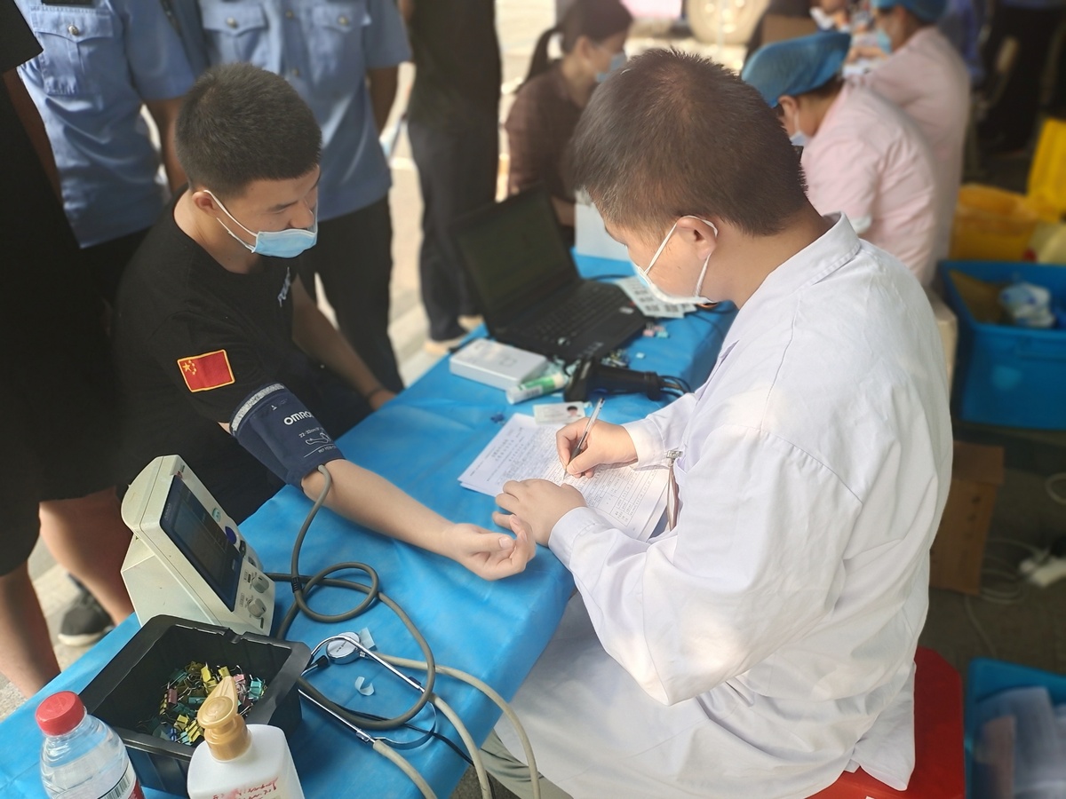 为方便本次师生献血,我中心将献血车开进学校,在做好防疫防护工作的情况下,分批次、分时段进行献血。在院青年志愿者协会的引导下,参与献血的师生认真填写个人信息表、献血登记表,在进行血压测量、血液初步检测等流程后,符合献血条件的教师和学生大胆地伸出手臂奉献热血。